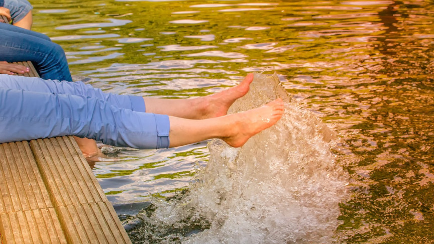 Die Beine und Füße zu verwöhnen ist das A und O beim Austricksen der heißen Tage. Machen Sie regelmäßig Pause von ihrer Schreibtischarbeit und legen Sie die Beine auch mal hoch auf den Tisch. So wird der Abtransport des Blutes aus den Beinen erleichtert. Die Folge ist ein Abschwellen und eine Normalisierung der Beine und Füße. Wer sehr viel Ehrgeiz hat, kann sich gleich noch auf den Boden legen und in der Luft Fahrrad fahren. Diese Übung wirkt wahre Wunder für die Beine. - Wie ein Baby frisch vergnügt im Wasser